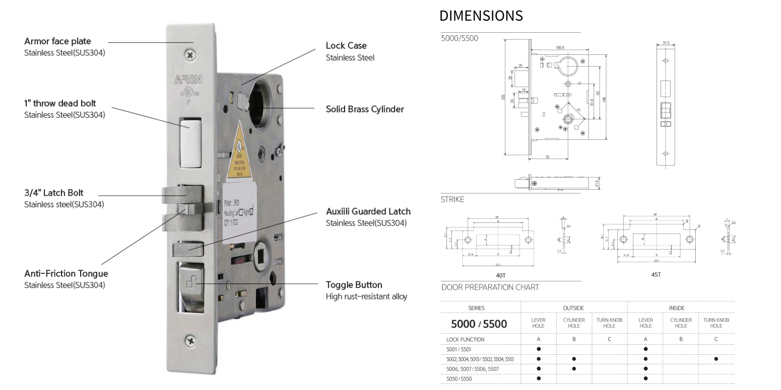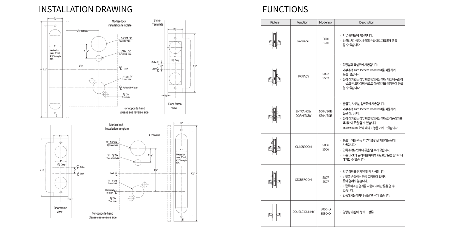 ■ 규격: ANSI A156.13 1등급 BHMA 인증