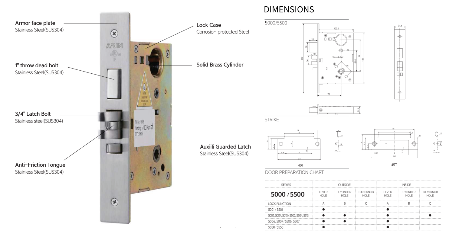 ■ 규격: ANSI A156.13 1등급 BHMA 인증
